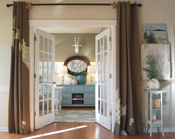 Гардины можно расположить не только на оконных, но и на дверных проемах.