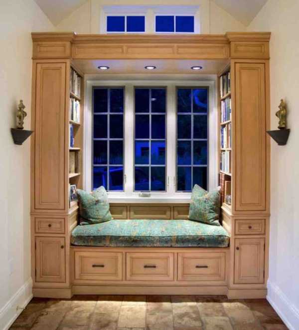 Подоконник со встроенным шкафом. Помогает сэкономить место.