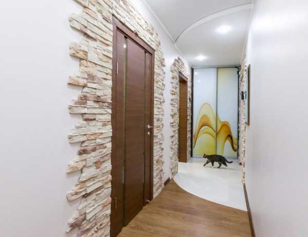Отделка прихожей стеновыми панелями ПВХ.- Декоративный камень, натуральный или искусственный украсит пространство любого размера. Природная фактура создаёт классический монументальный интерьер, который будет выглядеть надёжно и дорого. Можно отделать стены полностью или только на высоту одного метра от пола. Дизайн комбинируется с обоями более светлого оттенка;