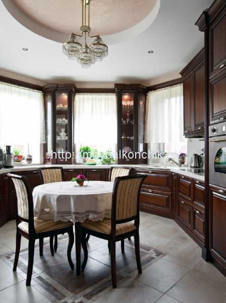 Если нет желания устраивать обеды в гостиной, или не позволяет этого планировка кухни, можно отвести эркер под место для чаепития. Такая модификация подойдет как для малометражного помещения, так и для большого.