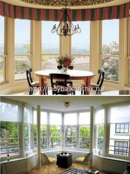 - Для декорирования идеально подходят занавески на специальных карнизах, повторяющих геометрию, или рулонные шторы. Классический стиль подчеркивают тканевые гардины длиной до самого пола, занавески, прихваченные ламбрекеном, или как «египетский рукав» с оригинальным напуском. Для декора широких эркерных окон идеально подходит весь изумительной красоты ассортимент ламбрекенов, стильных гирлянд, оригинальных каскадов.