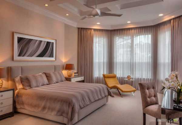 Эркер в спальне. Его можно превратить в маленький будуар, личное пространство для уединений – чтения книг, прослушивания музыки, общения в соцсетях. Здесь потребуется минимум мебели – на высокий поддонник будет достаточно положить несколько стильных мягких подушек (небольшой матрас или даже просто плед). Или вдоль окна установить скамью с нишами для хранения вещей. Вариант с креслами и журнальным столиком – достаточно спорный, только если вы собираетесь принимать в спальне очень близких, самых доверенных людей.
