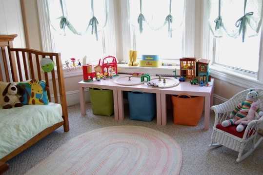 игровая зоны | дети всегда будут «на виду», разделение игровой и спальной зоны | стены эркера могут быть изрисованы, что будет видно гостям | безумные сочетания ярких красок |
