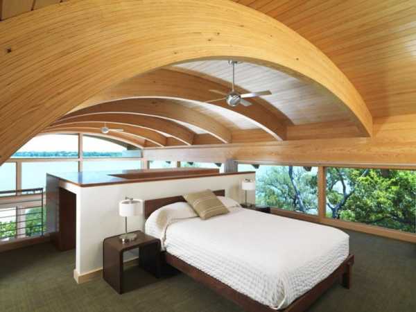 Если в доме присутствует мансарда, то это послужит идеальным помещением для спальни. Как принято считать, мансарда — это чердак, где хранятся ненужные принадлежности, но многие не знают и не понимают, что интерьер спальни в деревянном доме в помещении мансарды окажется интересным и неповторимым.