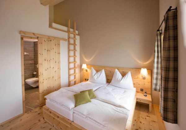 Если площадь маленькая, уютную и необычную спальню можно сделать и на антресоли. Для этого в обычном помещении создается деревянная конструкция, отгораживающая часть пространства у потолка.