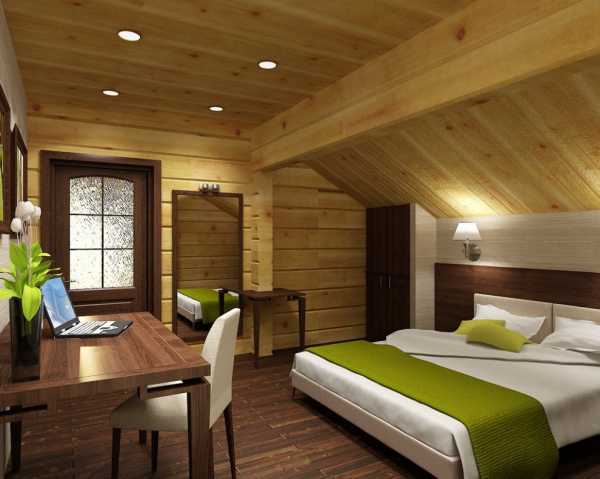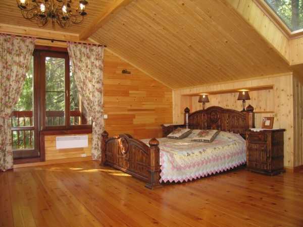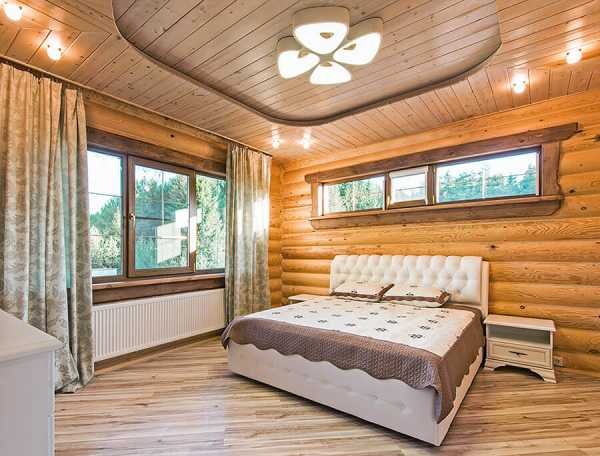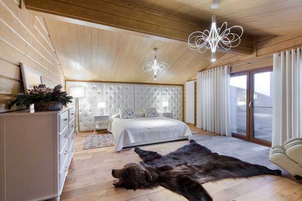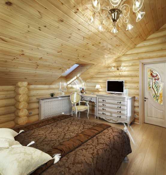 Дизайн спальни в деревянном доме (фото интерьера)