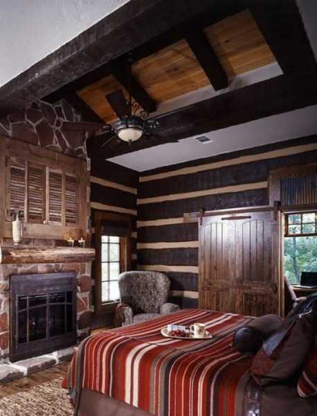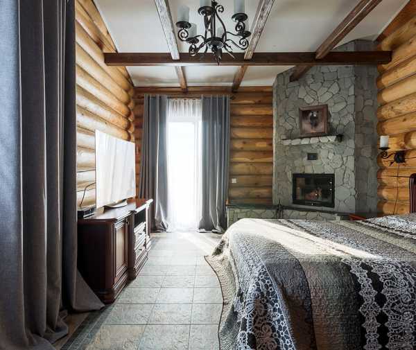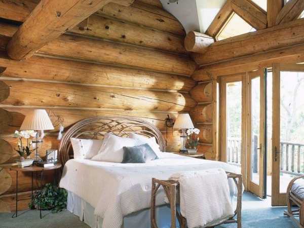 Интерьер спальни в доме из бруса или бревна