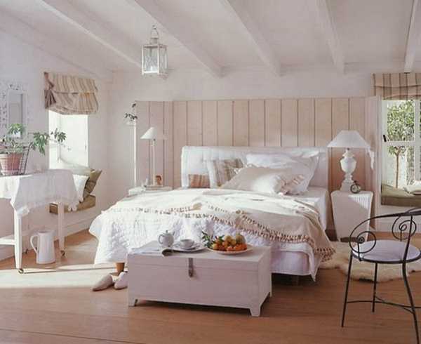 По сути кантри это тоже деревенский стиль, но имеющий характерные для Америки особенности. В интерьере такой спальни должны преобладать светлые природные оттенки: песочный, бежевый, молочный, льняной и др. Мебель в основном деревянная, имеющая простую форму. Для стиля кантри характерна отделка спальни при помощи лака или краски. В качестве аксессуаров можно использовать обилие текстиля, а на стенах развесить картины и семейные фотографии. Дополнительными элементами декора могут быть комнатные растения.