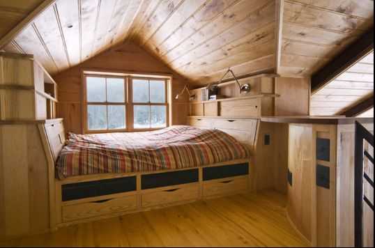 Зачастую в деревянных домах спальни размещаются на чердаке или мансарде. Для этого необходимо заранее позаботиться о правильной подготовке этого помещения. Ведь спальня – это место сна, т.е. человек будет проводить там много времени, а значит надо, чтобы это помещение было красиво оформлено, стоит позаботиться об утеплении и освещении чердачного помещения. При оформлении спальни на чердаке со скошенной крышей многим не нравится, что часть помещения как бы «съедается».