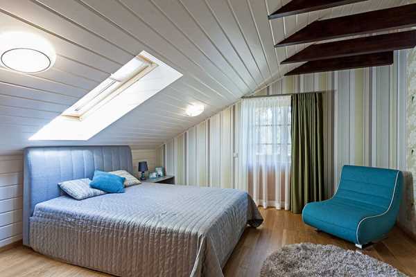 Спальню на чердаке деревянного дома необходимо правильно утеплить и позаботиться о достаточной освещенности помещения