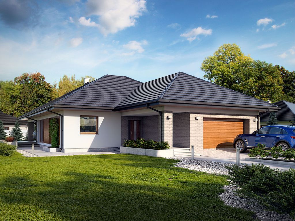 Одноэтажный дом с гаражом вид сверху