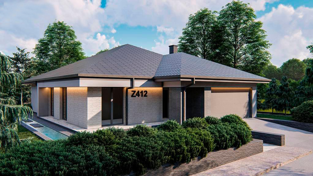 Дом 1 этаж: Z500. Проект одноэтажного дома Z24 с террасой для 4-5 человек 114 м2