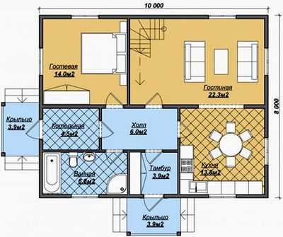 Пример планировки комфортного дома размером 8 на 10.