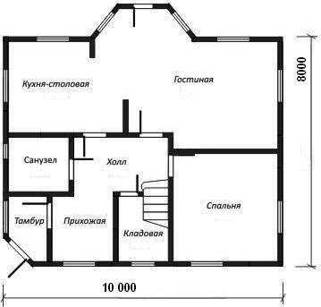 Пример планировки комфортного дома размером 8 на 10.