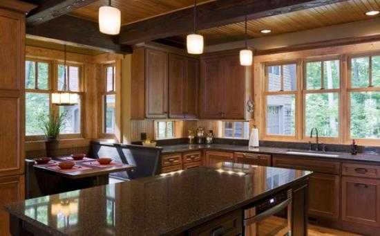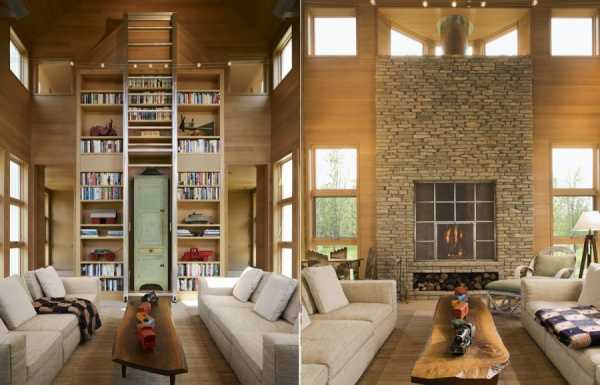 - деревенский домик в стиле шале с деревянными панелями и полами;