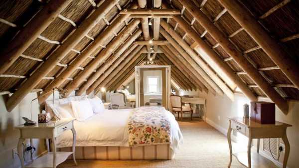 Чтобы потолок не получился слишком низким — балки следует установить повыше, а тип крыши выбрать двухскатную с ломаной конструкцией.