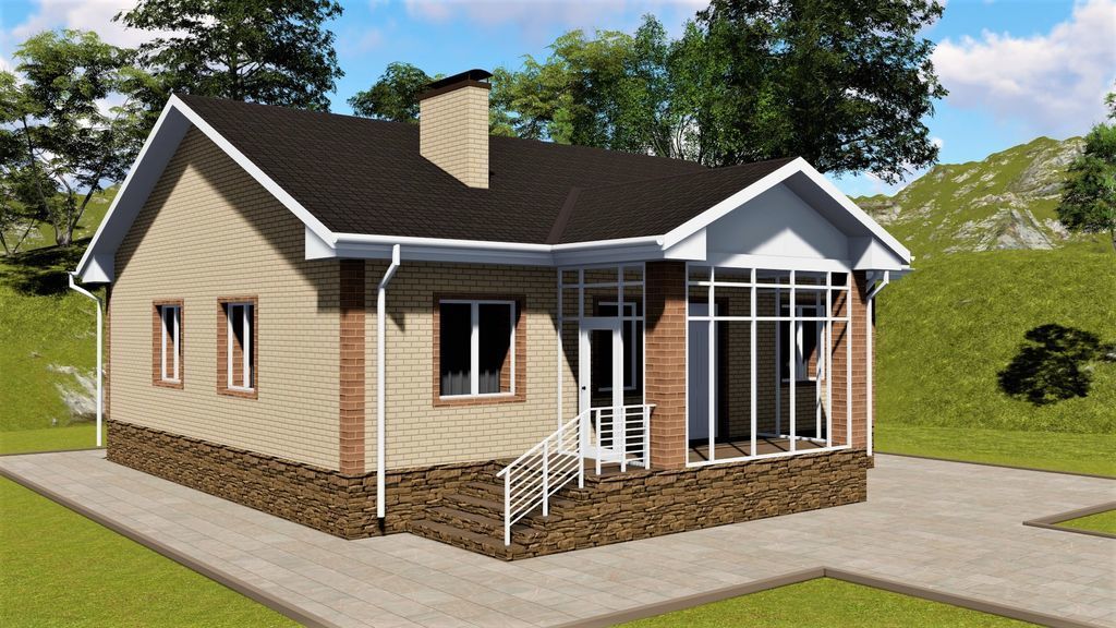 AS-2054 — проект одноэтажного дома из газобетона с крыльцом