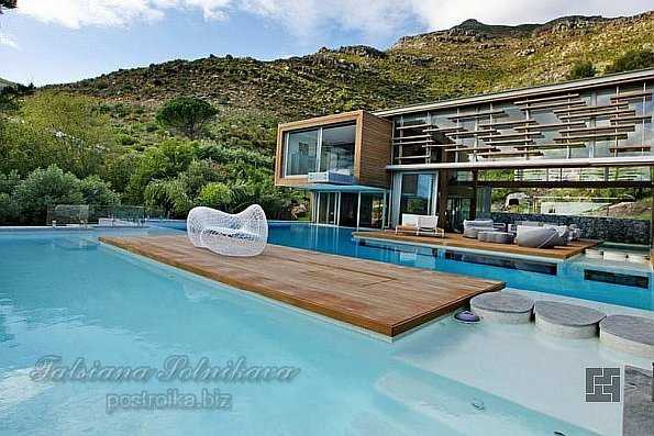комната для массажа. Спа-центр включает в себя сауну, джакузи, а также релаксационную комнату. Основным идейным центром частного Spa House от студии Metropolis Design является, конечно же, вода, которая выполняет самую главную роль в создании всей значимости особняка в Кейптауне. С трёх сторон виллу окружают бассейны (имеется отдельный и для детей) со множеством водных процедур.