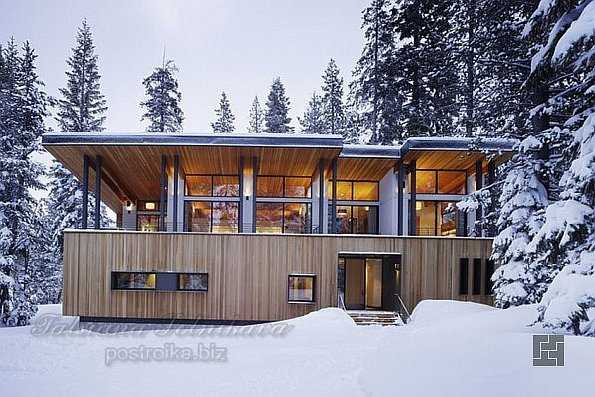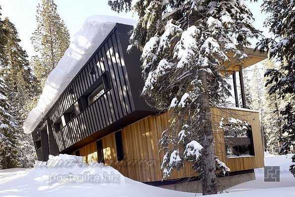 Так как природа не всегда милосердна к людям, то в противовес разного рода стихиям человек сам должен быть внутренне сильным, а также иметь безопасное, прочное жилье. Потому при создании уникального проекта горной жилой резиденции архитектор Джон Манискалко особо акцентировал внимание на надежности жилища. Здание было сооружено на площадке, где снежный покров мог достигать трех метров. Соответственно были профессионально учтены не только возможные массивные нагрузки снега на кровлю, но и возможные опасные сползания, смещения снежной глыбы с обычной скатной крыши. Вот потому постройка имеет простую форму прямоугольника и плоскую односкатную крышу, что определенно связано с погодными условиями Северной Калифорнии.