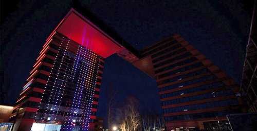 Изначально здание строилось в Олимпиаде 1980-го года как гостиница «Тверская». 22-этажный небоскрёб является одним из самых высоких зданий в городе и выглядит очень уж неустойчиво, за что местные окрестили его «Рюмкой». Впрочем, владельцы уверяют, что слухи о шатком фундаменте и недопустимом наклоне являются не более чем досужими вымыслами.