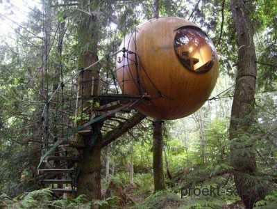 Планировка «Дома свободных духом» представляет собой невероятной красоты деревянные шары, подвешенные на деревьях. Изготовлены они Томом Чадлейем, проживающим в Канаде, причём изготовлены полностью вручную.