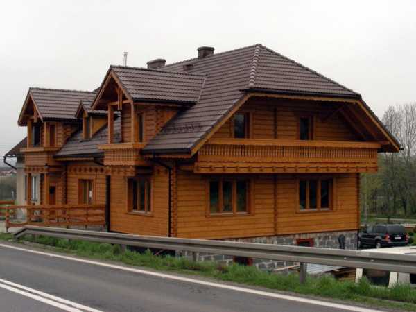 Облицовка брусового дома плиткой. Способ довольно непростой для отделки деревянных стен, но украшает и значительно утепляет фасад. Предварительно брус обрабатывают антисептиком.