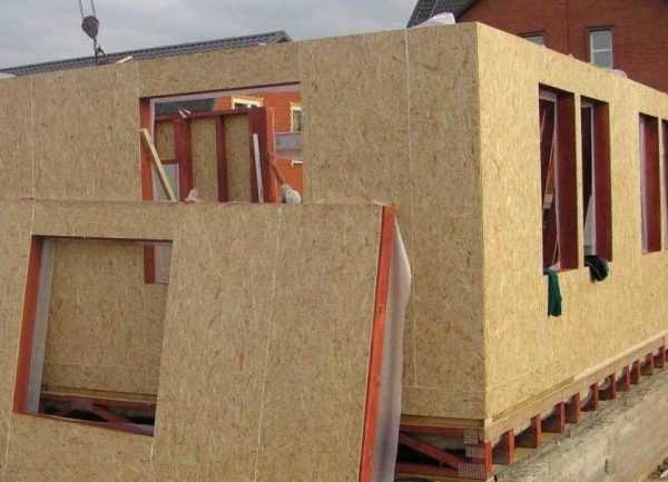 В завершение брусовый каркас обшивают плитами ОСБ. Они не годятся для финишной отделки, поскольку недостаточно привлекательны внешне и плохо переносят влагу. Поэтому необходимо стены защитить фасадным отделочным материалом.