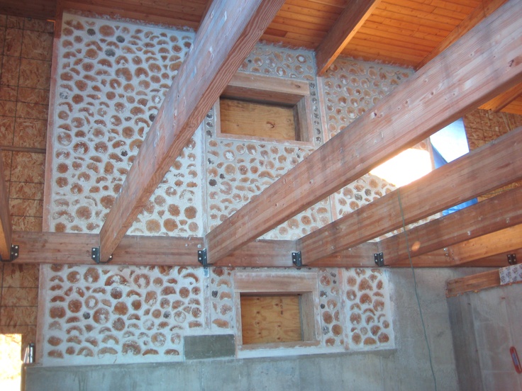 например, глиной с соломой или опилками с известью.