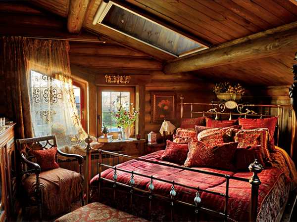 Интерьер спальни в бревенчатом доме
