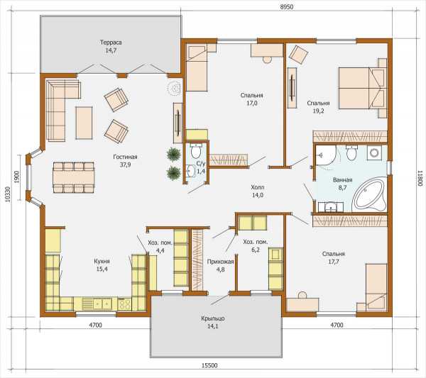 Майя — одноэтажный финский коттедж на четыре спальни 9х16 — 155 кв.метровМайя — финский одноэтажный дом на четыре спальни 9х15