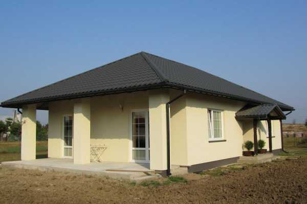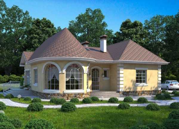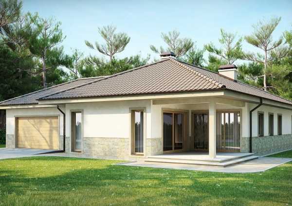 Отдавая дань моде, сегодня многие застройщики, разрабатывая дизайн одноэтажных домов, предпочитают дома с четырёхскатной крышей. Дом под такой кровлей будет выглядеть намного более презентабельно.
