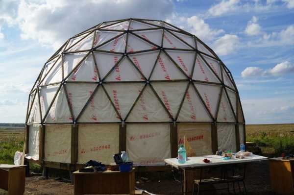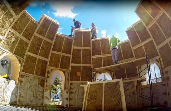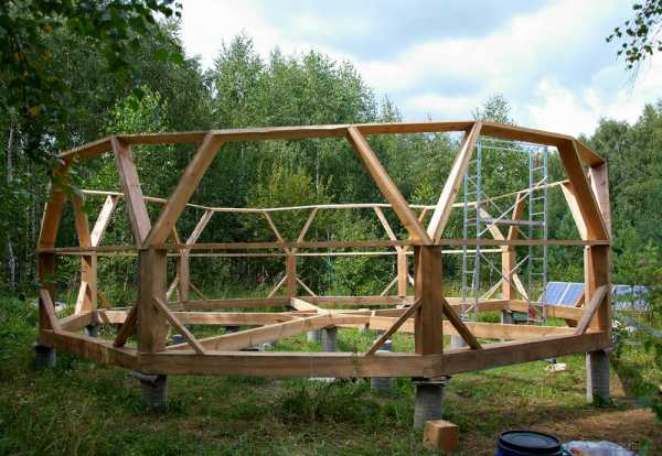 ΠΡΠ΅ΠΈΠΌΡΡΠ΅ΡΡΠ²ΠΎ ΡΡΡΠ°ΡΠΎΠ΄Π΅Π·ΠΈΡΠ΅ΡΠΊΠΎΠ³ΠΎ ΠΊΡΠΏΠΎΠ»ΡΠ½ΠΎΠ³ΠΎ Π΄ΠΎΠΌΠ° Π² ΠΎΠΊΡΡΠ³Π»ΠΎΠΉ ΡΠΎΡΠΌΠ΅ ΠΈ Π³ΠΎΡΠ°Π·Π΄ΠΎ Π±ΠΎΠ»Π΅Π΅ Π²ΡΡΠΎΠΊΠΎΠΉ ΠΏΡΠΎΡΠ½ΠΎΡΡΠΈ, ΠΎΠ΄Π½Π°ΠΊΠΎ ΠΈΠ·-Π·Π° Π±ΠΎΠ»ΡΡΠΎΠ³ΠΎ ΡΠ°Π·ΠΌΠ΅ΡΠ° Π΄Π΅ΡΠ°Π»Π΅ΠΉ Π΄Π»Ρ Π΅Π³ΠΎ ΠΌΠΎΠ½ΡΠ°ΠΆΠ° ΠΏΠΎΡΡΠ΅Π±ΡΠ΅ΡΡΡ ΠΊΡΡΠΏΠ½Π°Ρ Π±ΡΠΈΠ³Π°Π΄Π° ΠΈ ΡΡΡΠΎΠΈΡΠ΅Π»ΡΠ½Π°Ρ ΡΠ΅Ρ Π½ΠΈΠΊΠ°. Π’Π°ΠΊΠΈΠ΅ ΡΡΡΠΎΠ΅Π½ΠΈΡ ΠΌΠΎΠΆΠ½ΠΎ ΡΡΡΠ°Π½Π°Π²Π»ΠΈΠ²Π°ΡΡ Π½Π° ΡΠ²Π°ΠΉΠ½ΡΠΉ, Π²ΠΈΠ½ΡΠΎΠ²ΠΎΠΉ ΠΈΠ»ΠΈ Π»Π΅Π½ΡΠΎΡΠ½ΡΠΉ ΡΡΠ½Π΄Π°ΠΌΠ΅Π½Ρ, Π²Π΅Π΄Ρ ΠΏΡΠΈ Π±ΠΎΠ»ΡΡΠΈΡ ΡΠ°Π·ΠΌΠ΅ΡΠ°Ρ ΠΎΠ½ΠΈ ΠΎΡΠ»ΠΈΡΠ°ΡΡΡΡ Π½Π΅Π±ΠΎΠ»ΡΡΠΈΠΌ Π²Π΅ΡΠΎΠΌ. ΠΡΠΈ ΠΈΠ·Π³ΠΎΡΠΎΠ²Π»Π΅Π½ΠΈΠΈ ΡΡΠ°Π³ΠΌΠ΅Π½ΡΠΎΠ² Π½Π΅ΠΎΠ±Ρ ΠΎΠ΄ΠΈΠΌΠΎ ΡΡΠ°ΡΠ΅Π»ΡΠ½ΠΎ ΠΏΡΠΎΡΡΠΈΡΡΠ²Π°ΡΡ ΠΈΡ Π΄Π»ΠΈΠ½Ρ ΠΈ ΡΠΎΡΠΌΡ, Π² ΠΏΡΠΎΡΠΈΠ²Π½ΠΎΠΌ ΡΠ»ΡΡΠ°Π΅ ΠΊΡΠΏΠΎΠ» ΠΏΠΎΠ»ΡΡΠΈΡΡΡ ΠΊΡΠΈΠ²ΡΠΌ. ΠΠ»Ρ ΠΈΠ·Π³ΠΎΡΠΎΠ²Π»Π΅Π½ΠΈΡ Π³ΠΎΡΠΈΠ·ΠΎΠ½ΡΠ°Π»ΡΠ½ΡΡ ΡΠ»Π΅ΠΌΠ΅Π½ΡΠΎΠ² ΠΈΡΠΏΠΎΠ»ΡΠ·ΡΡΡ ΠΎΠ±ΡΡΠ½ΡΠ΅ Π΄ΠΎΡΠΊΠΈ, Π½Π°ΡΠ΅Π·Π°Ρ ΠΈΠ· Π½ΠΈΡ ΠΊΡΡΠΊΠΈ Π½ΡΠΆΠ½ΠΎΠ³ΠΎ ΡΠ°Π·ΠΌΠ΅ΡΠ° ΠΈ ΡΠΎΡΠΌΡ.