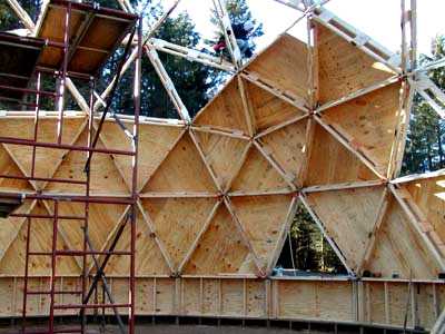 ΠΡΠ΅ΠΈΠΌΡΡΠ΅ΡΡΠ²ΠΎ Π³Π΅ΠΎΠ΄Π΅Π·ΠΈΡΠ΅ΡΠΊΠΎΠ³ΠΎ ΠΊΡΠΏΠΎΠ»ΡΠ½ΠΎΠ³ΠΎ Π΄ΠΎΠΌΠ° Π² ΡΠΎΠΌ, ΡΡΠΎ Π΅Π³ΠΎ ΡΠΎΠ±ΠΈΡΠ°ΡΡ ΠΈΠ· Π½Π΅Π±ΠΎΠ»ΡΡΠΈΡ ΡΡΠ΅ΡΠ³ΠΎΠ»ΡΠ½ΡΡ ΡΡΠ°Π³ΠΌΠ΅Π½ΡΠΎΠ², ΠΏΠΎΡΡΠΎΠΌΡ ΠΌΠΎΠ½ΡΠ°ΠΆ ΠΌΠΎΠΆΠ½ΠΎ ΠΏΡΠΎΠ²ΠΎΠ΄ΠΈΡΡ Π½Π΅Π±ΠΎΠ»ΡΡΠΈΠΌΠΈ ΡΠΈΠ»Π°ΠΌΠΈ. ΠΡΠΈΡΠ΅ΠΌ, ΡΠ΅ΠΌ ΠΌΠ΅Π½ΡΡΠ΅ ΡΠ°Π·ΠΌΠ΅Ρ ΠΊΠ°ΠΆΠ΄ΠΎΠ³ΠΎ ΡΡΠ΅ΡΠ³ΠΎΠ»ΡΠ½ΠΎΠ³ΠΎ ΡΡΠ°Π³ΠΌΠ΅Π½ΡΠ° ΠΎΡΠ½ΠΎΡΠΈΡΠ΅Π»ΡΠ½ΠΎ Π΄ΠΈΠ°ΠΌΠ΅ΡΡΠ° ΡΡΡΠΎΠ΅Π½ΠΈΡ, ΡΠ΅ΠΌ Π±ΠΎΠ»Π΅Π΅ ΠΊΡΡΠ³Π»ΡΠΌ ΠΈ ΠΏΡΠΎΡΠ½ΡΠΌ ΠΏΠΎΠ»ΡΡΠΈΡΡΡ Π·Π΄Π°Π½ΠΈΠ΅. ΠΠΎΡΠΊΠΈ, ΠΈΠ· ΠΊΠΎΡΠΎΡΡΡ ΡΠΎΡΠΌΠΈΡΡΡΡ ΡΡΠ΅ΡΠ³ΠΎΠ»ΡΠ½ΠΈΠΊΠΈ, ΡΠΎΠ΅Π΄ΠΈΠ½ΡΡΡ ΠΌΠ΅ΠΆΠ΄Ρ ΡΠΎΠ±ΠΎΠΉ Ρ ΠΏΠΎΠΌΠΎΡΡΡ ΠΊΠΎΠ½Π½Π΅ΠΊΡΠΎΡΠΎΠ², ΠΎΠ΄Π½Π°ΠΊΠΎ ΡΡΠΎ ΡΠ²Π΅Π»ΠΈΡΠΈΠ²Π°Π΅Ρ ΠΎΠ±ΡΡΡ ΡΡΠΎΠΈΠΌΠΎΡΡΡ ΡΠ°Π±ΠΎΡ ΠΈ Π·Π°ΡΡΡΠ΄Π½ΡΠ΅Ρ ΡΡΡΠ°Π½ΠΎΠ²ΠΊΡ ΡΡΠ΅ΠΏΠ»ΠΈΡΠ΅Π»Ρ. ΠΠΎΡΡΠΎΠΌΡ ΠΌΠΎΠΆΠ½ΠΎ ΡΠΎΠ±ΠΈΡΠ°ΡΡ ΠΊΠ°ΡΠΊΠ°Ρ ΠΈΠ· Π³ΠΎΡΠΎΠ²ΡΡ ΡΡΠ΅ΡΠ³ΠΎΠ»ΡΠ½ΡΡ ΡΠ΅ΠΊΡΠΈΠΉ, ΠΈΠ·Π³ΠΎΡΠΎΠ²Π»Π΅Π½Π½ΡΡ ΠΈΠ· Π΄Π΅ΡΠ΅Π²ΡΠ½Π½ΡΡ ΠΏΠ»Π°Π½ΠΎΠΊ. ΠΠ΄Π½Π°ΠΊΠΎ ΠΏΡΠΈ ΠΈΠ·Π³ΠΎΡΠΎΠ²Π»Π΅Π½ΠΈΠΈ ΡΠ΅ΠΊΡΠΈΠΉ Π½Π΅ΠΎΠ±Ρ ΠΎΠ΄ΠΈΠΌΠΎ ΡΡΠ°ΡΠ΅Π»ΡΠ½ΠΎ ΠΏΡΠΎΡΡΠΈΡΡΠ²Π°ΡΡ ΡΠ³ΠΎΠ» ΠΏΠΎΠ²ΠΎΡΠΎΡΠ° ΠΊΠ°ΠΆΠ΄ΠΎΠΉ ΠΈΠ· ΠΏΠ»Π°Π½ΠΎΠΊ Π²ΠΎΠΊΡΡΠ³ ΡΠ²ΠΎΠ΅ΠΉ ΠΎΡΠΈ. ΠΡΠ»ΠΈ ΡΠ³Π»Ρ ΠΏΠΎΠ΄ΠΎΠ±ΡΠ°Π½Ρ ΠΏΡΠ°Π²ΠΈΠ»ΡΠ½ΠΎ, ΡΠΎ ΠΏΠ»Π°Π½ΠΊΠΈ ΡΠΎΡΠ΅Π΄Π½ΠΈΡ ΡΠ΅Π³ΠΌΠ΅Π½ΡΠΎΠ² Π±ΡΠ΄ΡΡ ΠΏΠ»ΠΎΡΠ½ΠΎ ΠΏΡΠΈΠ»Π΅Π³Π°ΡΡ Π΄ΡΡΠ³ ΠΊΠΎ Π΄ΡΡΠ³Ρ, Π±Π»Π°Π³ΠΎΠ΄Π°ΡΡ ΡΠ΅ΠΌΡ ΡΠ²Π΅Π»ΠΈΡΠΈΡΡΡ ΠΏΡΠΎΡΠ½ΠΎΡΡΡ ΠΈ ΠΆΠ΅ΡΡΠΊΠΎΡΡΡ Π²ΡΠ΅ΠΉ ΠΊΠΎΠ½ΡΡΡΡΠΊΡΠΈΠΈ.