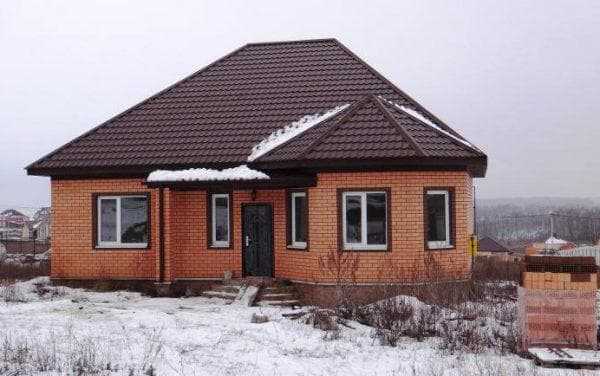 Одноэтажный дом из кирпича 137 м2 с эркером и крыльцом