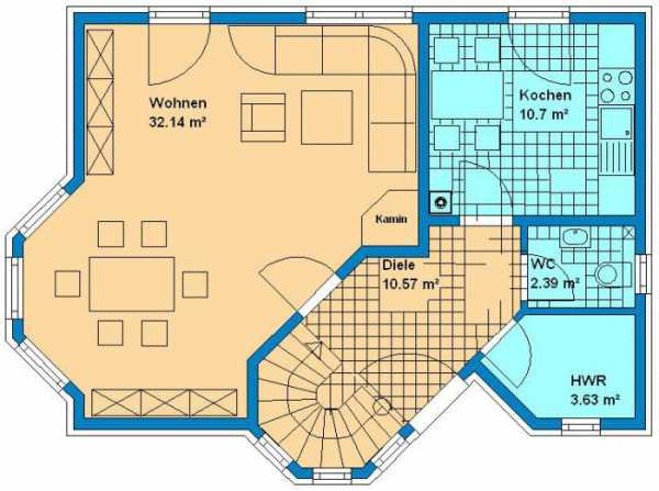План первого этажа дома с эркером