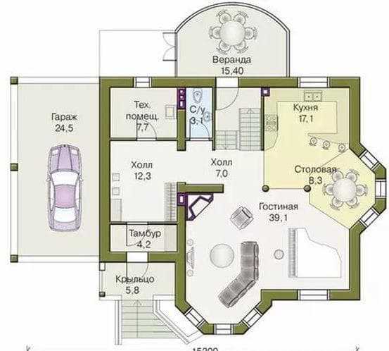 Планировка дома с эркером и полукруглой верандой станет оптимальным решением для людей, которые любят оригинальность во всем. Раньше наличие таких элементов говорило о том, что этот объект недвижимости можно отнести к элитным, но на сегодняшний день это встречается все чаще и постепенно становится обыденным явлением. Проект, представленный в этой статье, порадует вас своим удобством и функциональностью, поэтому вам непременно захочется возвести такой же.