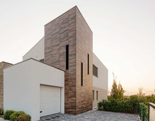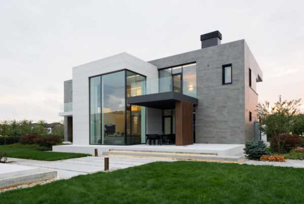 Одна из характерных черт частного строительства в современной манере — комбинация нескольких кубических объемов разного размера. Чтобы такая сдержанная архитектура приобрела выразительность, в отделке фасадов применяют контрастные сочетания цветов.