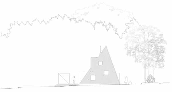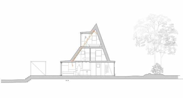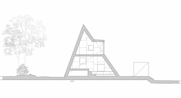 При всей своей простоте треугольное здание имеет оригинальный вид, лаконичные формы, а излом верхней стены подчеркивает своеобразие и уют