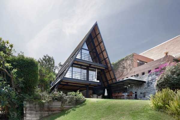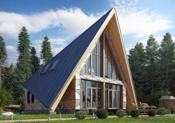 Треугольные сооружения достаточно просты в сборке, поэтому владельцы дачных участков могут воплощать в жизнь красивые проекты каркасных домов своими руками без помощи специалистов.
