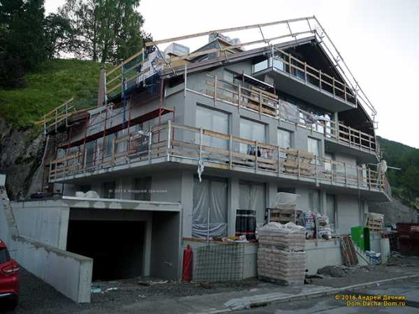 Современные дома в стиле шале возводятся из любых материалов. Например, из монолитного железобетона.