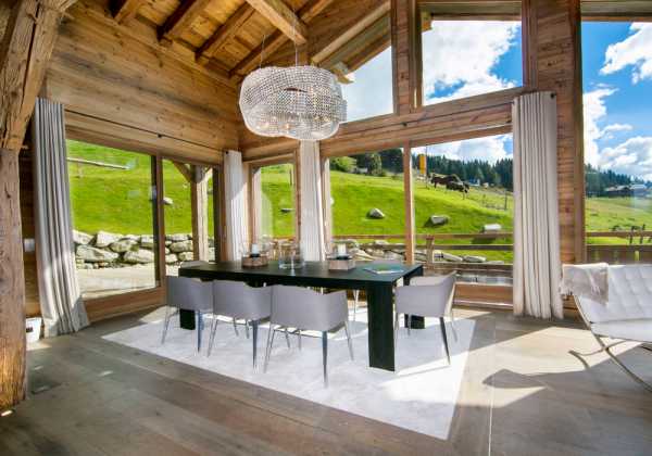 В современных шале увеличивается площадь остекления, позволяющая интерьеру шале сливаться с окружающими пейзажами.