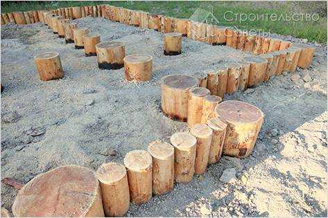 Строительство стен дома производится на подготовленное основание, которое изготавливается бруса не струганного бруса.