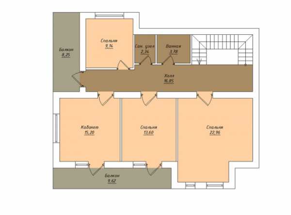 Комбинированные дома из камня и дерева. Рис. 3. План второго этажа