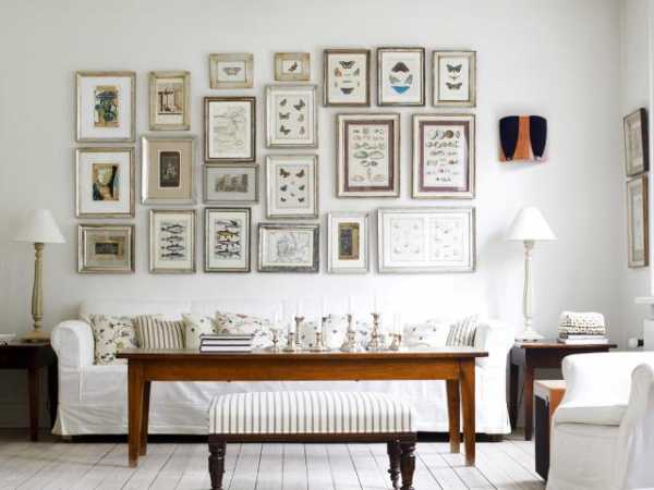 Уют дома всегда добавляют семейные фотографии. Однако не стоит расставлять их хаотично по всей гостиной. Гораздо лучше развесить на одной из стен в одинаковых рамках. Если похожих нет, можно попросту покрасить имеющиеся серебристым лаком для ногтей. Всегда эффектно смотрятся искусственно состаренные и черно-белые фотографии.