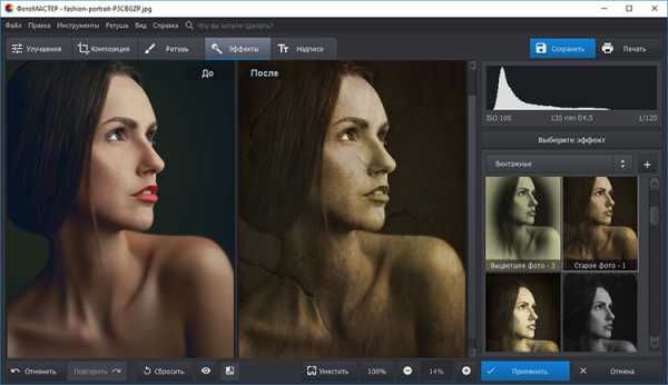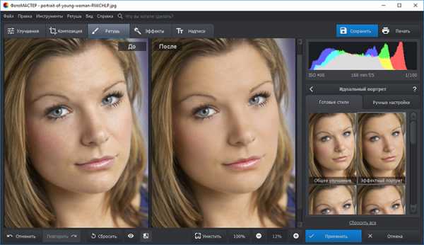 Уберите лишние блики, дефекты кожи, устраните эффект красных глаз – это и многое другое можно сделать с помощью инструментов раздела «Ретушь». Одним кликом улучшить фотографию позволит функция «Идеальный портрет». Используйте готовые стили, чтобы лицо на снимке стало совершенным.