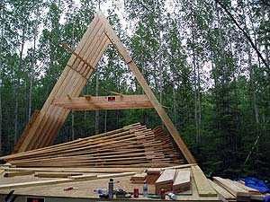 Сборка А-образных элементов каркаса дома шалаша