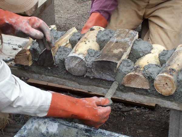 Возьмите округлый нож и вмажьте с его помощью раствор между уложенными дровами. Со временем дрова будут усыхать, и вы должны будете заполнять щели раствором по мере их появления.