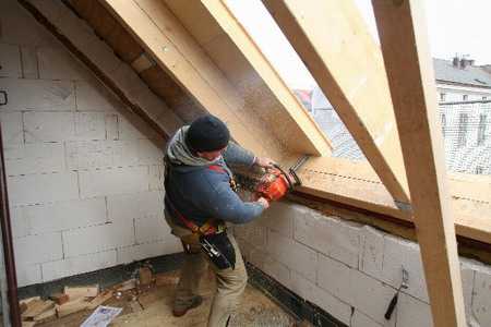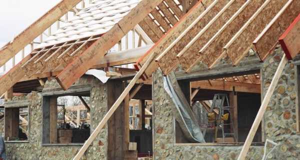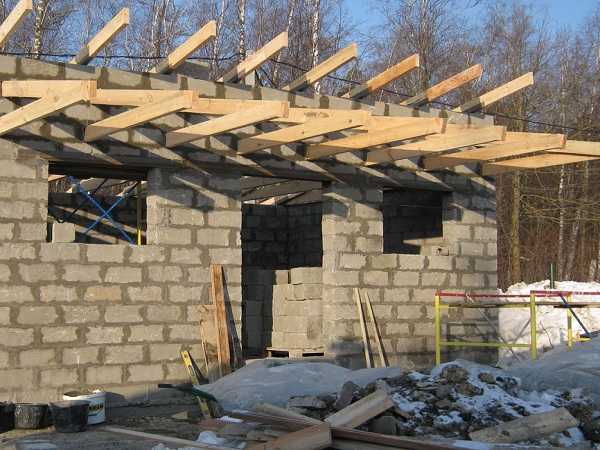 Второй этап. Установите балки перекрытия домика. Основа такого строения представлена стропилами в виде буквы «А». Стропила устанавливаются на предварительно утепленное перекрытие. Если домик будет иметь большую высоту, выполняется сращивание элементов стропильной системы по высоте.