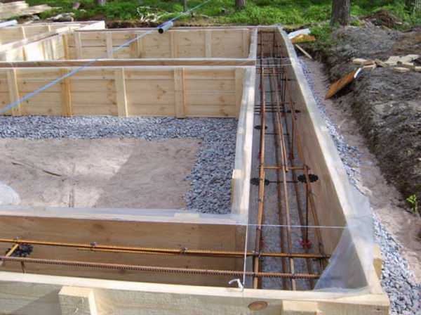 Первый этап. Подготовьте ленточный бетонный фундамент. Допускается также применение столбчатого фундамента, однако предварительно нужно убедиться, что грунт на местности не подвержен сильному морозному пучению.