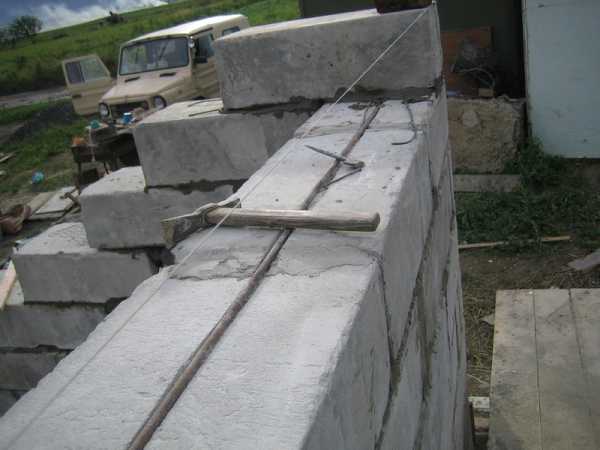 В местах примыкания стен выполняйте дополнительное армирование все той же колючей проволокой.